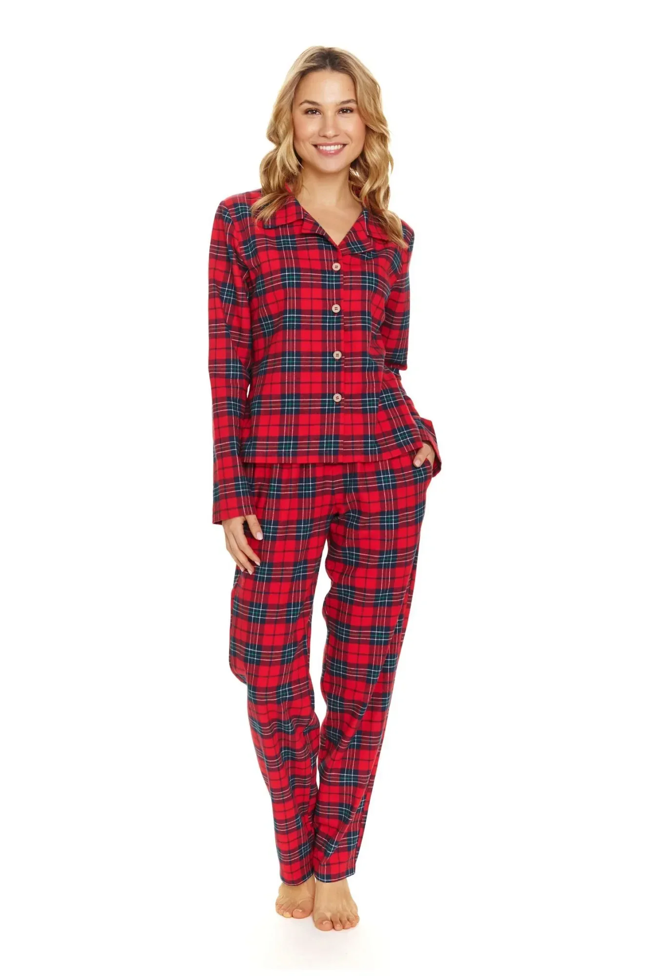 Dámské pyžamo 7125 Doctornap - z vysoce jakostní bavlny - červená károvaná košile s dlouhými rukávy - s límečkem - zapínání na knoflíky - dlouhé červené kalhoty s kapsami - certifikát OEKO-TEX Standard 100
