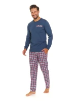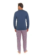 Pánské pyžamo 7147 plus Doctornap - z vysoce jakostní bavlny - modré tričko s dlouhými rukávy - na přední straně kapsička - dlouhé kárované kalhoty - elastická guma v pase - certifikát OEKO-TEX Standard 100