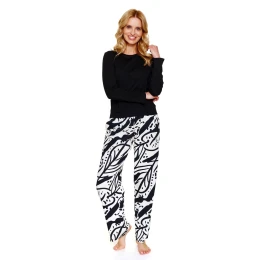 Dámské pyžamo 7309 Doctornap - z vysoce jakostní viskózy - černá halenka s dlouhými rukávy - kulatý výstřih - dlouhé volné nohavice s potiskem - s kapsami