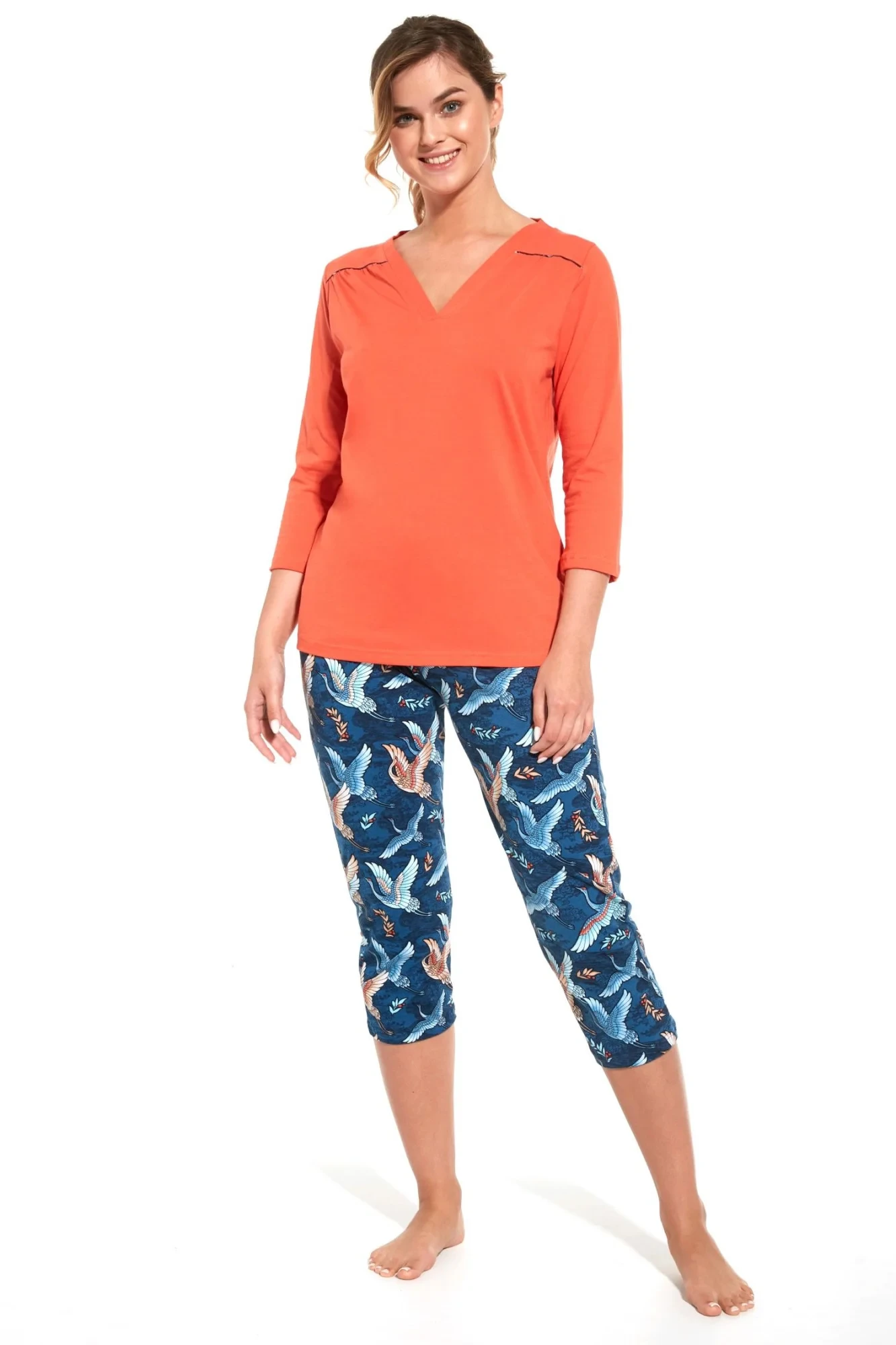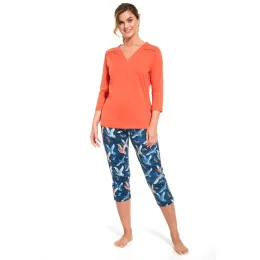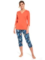 Dámské pyžamo 748/317 Claudia CORNETTE - z vysoce kvalitní a na dotyk příjemné bavlny - korálové tričko s tříčtvrtečními rukávy - vzorované capri kalhoty