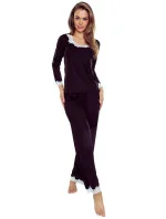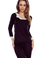 Dámské pyžamo Arleta black ELDAR - černá barva - z vysoce jakostní viskózy - dlouhé rukávy - volné dlouhé kalhoty - výstřih, rukávy i nohavice zakončené krémovou krajkou