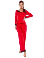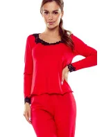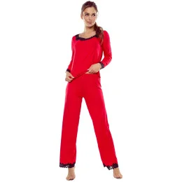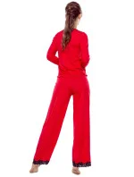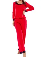 Dámské pyžamo Arleta black ELDAR - černá barva - z vysoce jakostní viskózy - dlouhé rukávy - volné dlouhé kalhoty - výstřih, rukávy i nohavice zakončené krémovou krajkou