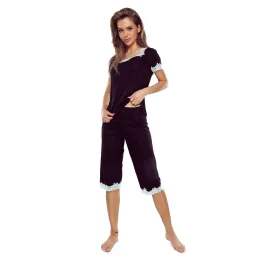 Dámské pyžamo Aster black ELDAR - černá barva - z vysoce jakostní viskózy - krátké rukávy - volné kalhoty - výstřih, rukávy i nohavice zakončené krémovou krajkou