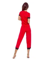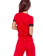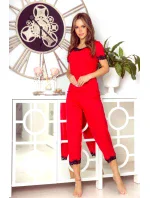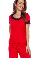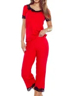 Dámské pyžamo Aster black ELDAR - černá barva - z vysoce jakostní viskózy - krátké rukávy - volné kalhoty - výstřih, rukávy i nohavice zakončené krémovou krajkou