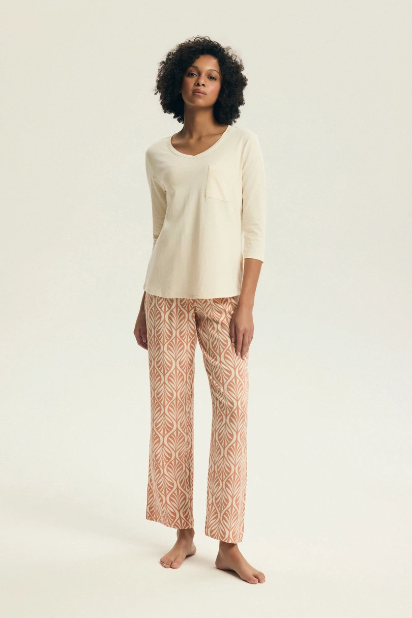 Dámské pyžamo DENISE 43671 z kolekce SS26 je vynikající volbou pro ženy, které si cení pohodlí, přírodních materiálů a nadčasového stylu.