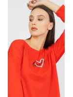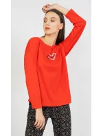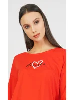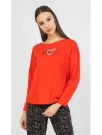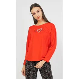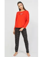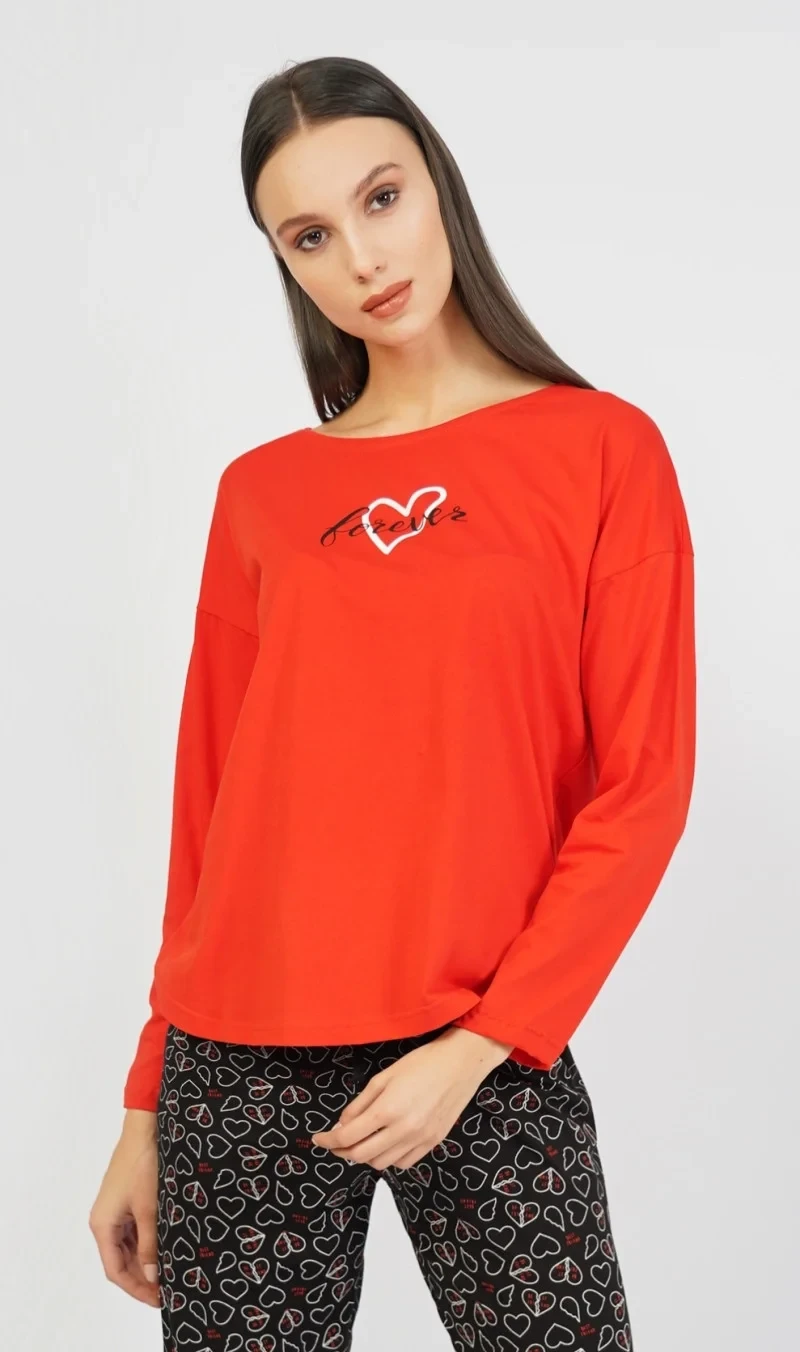 Dámské bavlněné pyžamo dlouhé Forever. Dámské pyžamo dlouhé Forever se skládá z trička s dlouhým rukávem a dlouhých kalhot. Na jednobarevném tričku je nápis FOREVER a obrázek srdíčka, tento motiv opakuje i na dlouhých kalhotách. Kalhoty mají gumu a šňůrku na stáhnutí, nemají kapsy. Použitý bavlněný materiál je poddajný a příjemný na dotek.