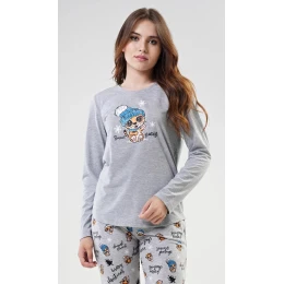 Dámské pyžamo dlouhé Tygřík šedé - Vienetta