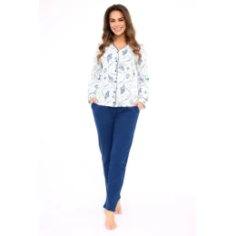 Piżama damska KRISTIN DR 682/445 to idealna propozycja dla kobiet ceniących styl, wygodę i funkcjonalność. Wykonana z wysokiej jakości, wzorzystej bawełny, bluzka z długim rękawem jest rozpinana na guziki – praktyczna i elegancka. Komplet uzupełniają jednolite, długie spodnie z prostymi nogawkami oraz kieszeniami, które dodają wygody na co dzień. Całość uszyta z naturalnej tkaniny zapewniającej komfort termiczny, przewiewność i swobodę ruchów. Piżama zapakowana jest w estetyczne pudełko, co czyni ją również świetnym pomysłem na prezent.