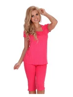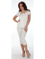 Horní díl s krátkým rukávem, řasený výstřih. Kalhoty délky 3/4.