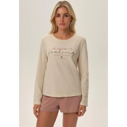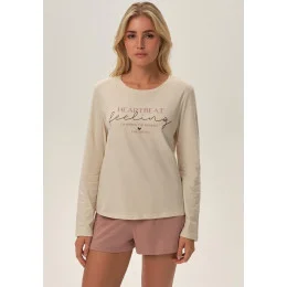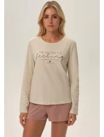 Dámské pyžamo od značky Henderson. Vrchní díl pyžama má dlouhý rukáv, kulatý výstřih a potisk uprostřed. Šortky jsou jednobarevné, bez kapes a v pase mají pohodlnou pružnou gumu se šňůrkou. Pyžamo je ušité z lehké příjemné bavlny.