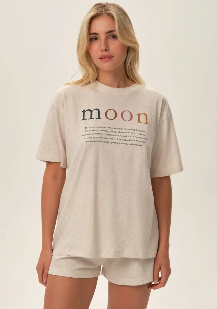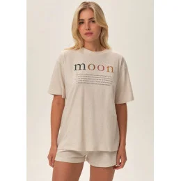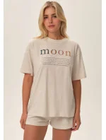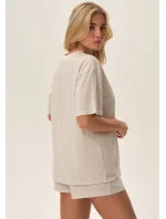 Dámské pyžamo od značky Henderson. Vrchní díl pyžama má krátký rukáv, kulatý výstřih a potisk uprostřed. Šortky jsou jednobarevné, bez kapes a v pase mají pohodlnou pružnou gumu. Pyžamo je ušité z lehkého příjemného materiálu.