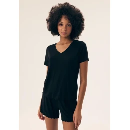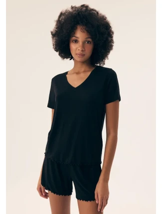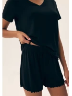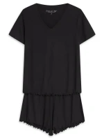 Dopřejte si maximální pohodlí s černým pyžamem Henderson. Tento dvoudílný set tvoří tričko s krátkým rukávem a pohodlné šortky s jemným řasením. Pyžamo je vyrobené z hebkého a prodyšného materiálu, který zajišťuje komfort během spánku i odpočinku. Černá barva podtrhuje elegantní vzhled a univerzálnost. Ideální volba pro pohodové večery doma.