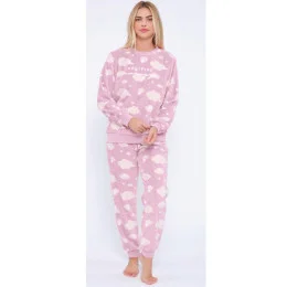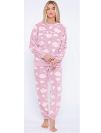 Dámské pyžamo Muydemi je elegantní a pohodlný komplet, který se postará o klidný spánek i příjemné domácí chvíle. Horní díl tvoří tričko s dlouhým rukávem v sytě růžové barvě se zapínáním na krátký zip u výstřihu. Kalhoty v dlouhém střihu zdobí moderní listový vzor v kontrastní kombinaci růžové a bílé barvy. Pyžamo je vyrobeno z měkkého a příjemného materiálu, který zajistí komfort během celé noci. Stylový design dodává pyžamu šmrnc, díky čemuž je ideální nejen na spaní, ale i na pohodové večery doma.