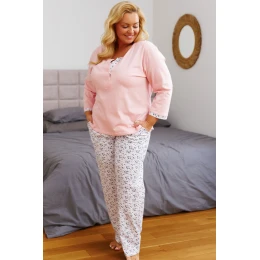 Piżama damska PB.7324 J/25 marki Doctor Nap to połączenie wygody, funkcjonalności i kobiecego stylu. Góra zestawu to bluzka z rękawem o długości 7/8, z okrągłym dekoltem zapinanym na napy – praktyczne rozwiązanie, szczególnie cenione przez mamy karmiące oraz osoby ceniące łatwość zakładania.