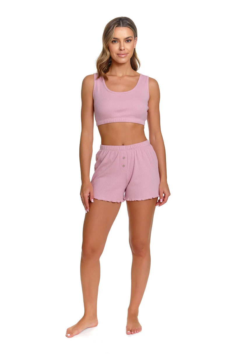 Dámské pyžamo Doctor Nap PM.7464 je lehký, pohodlný komplet vrchního dílu s krátkými šortkami, vyrobený ze 100% kvalitní bavlny. Přírodní materiál zajišťuje vynikající prodyšnost, měkkost a jemnost k pokožce, což zaručuje pohodlí během spánku i doma. Model s krátkými šortkami je ideální pro teplejší dny, nabízí volnost pohybu a optimální tepelný komfort. Bavlna umožňuje pokožce dýchat, účinně odvádí přebytečnou vlhkost a je šetrná i k citlivé pokožce. Pečlivě propracovaný střih a kvalitní zpracování typické pro značku Doctor Nap zaručují, že si pyžamo PM.7464 zachová svůj tvar a estetický vzhled i po mnoha vypráních. Je to vynikající volba pro ženy, které ocení přírodní materiály, pohodlí a nadčasový styl.