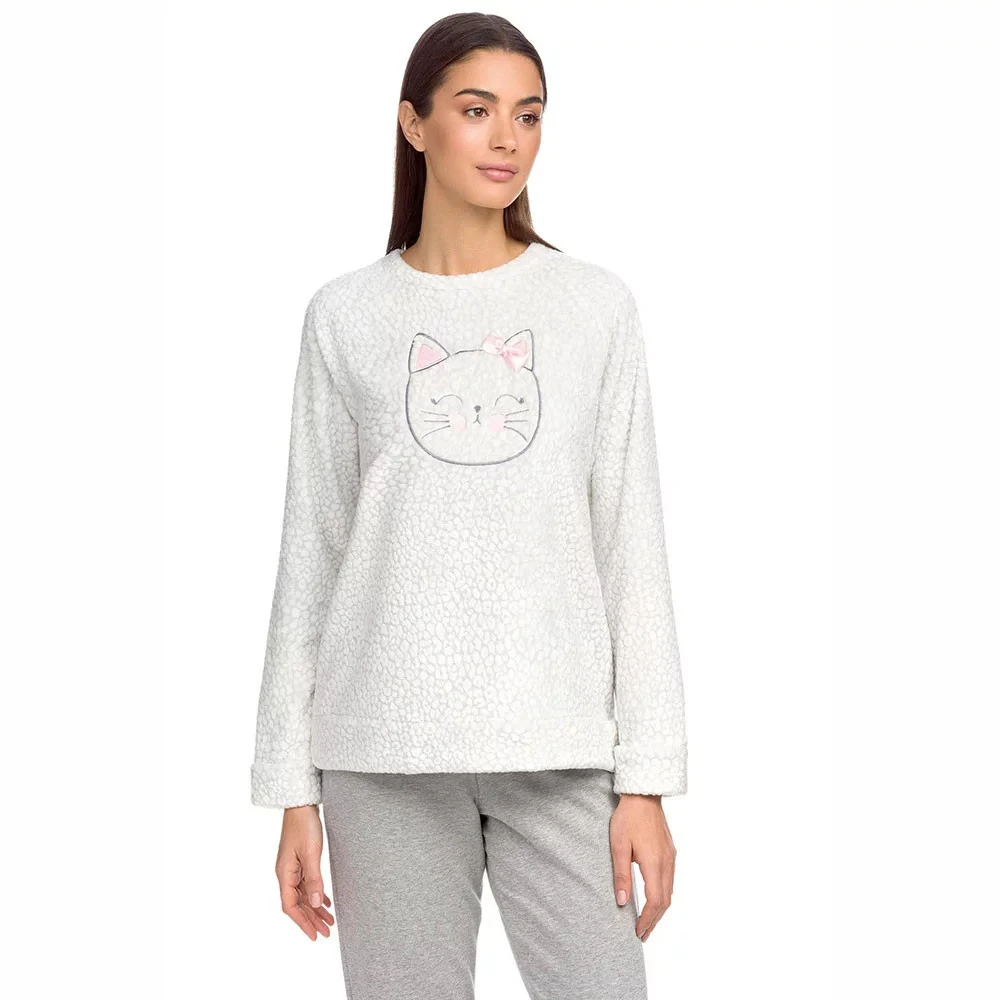 Dámské pyžamo s nášivkou kočky 15234 - 473 Šedá - Vamp