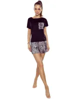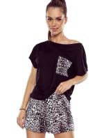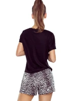 Dámské pyžamo Silvana panther ELDAR - z vysoce kvalitní viskózy - černé tričko s krátkými rukávy - vzorované kraťasy se zvířecím motivem