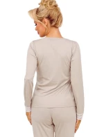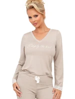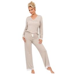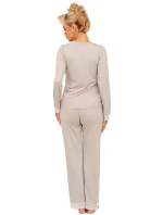 Dámské pyžamo Santi long red Donna - červená barva - z vysoce jakostní bavlny - červené tričko s dlouhými rukávy - dlouhé vzorované kalhoty zakončené červeným lemem