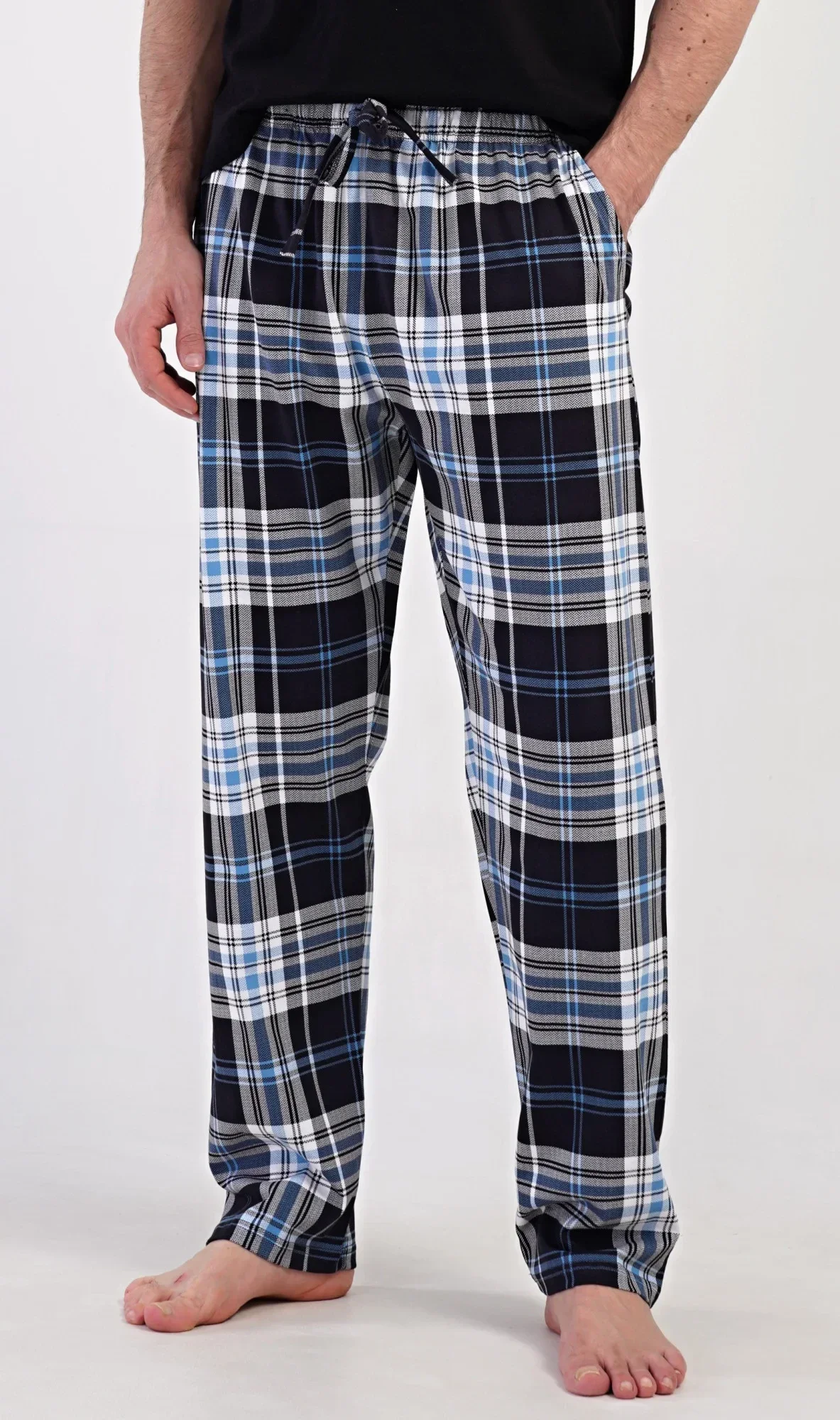 Pánské bavlněné pyžamové kalhoty Felix. Kostkované kalhoty mají v pase gumu, šňůrku na stažení a praktické kapsy. Mateiriál s podílem bavlny 100% je příjemný a poddajný na dotek.