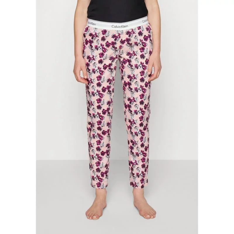 Dámské pyžamové kalhoty QS6158E 1F7 - meruňková/kytičky - Calvin Klein