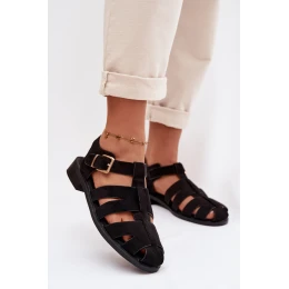 Dámské Římské Sandály Černé Janessa se Zlatým Přezkou