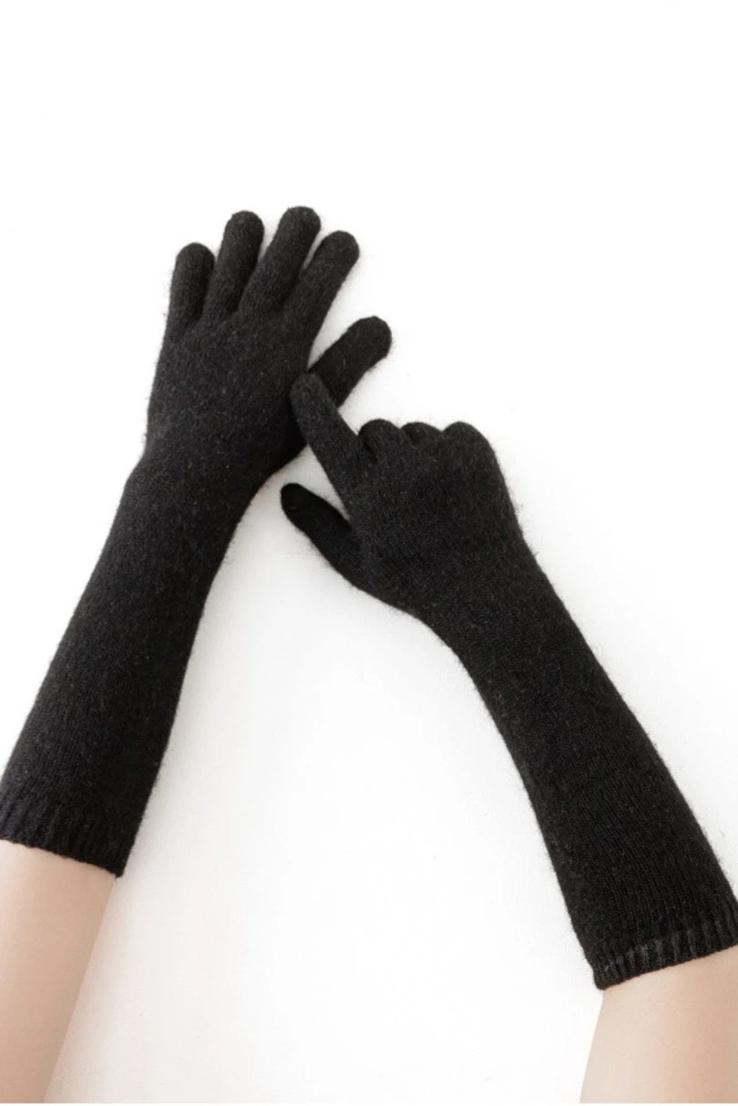 Dlouhé dámské rukavice s angorským vzorem jsou elegantním a praktickým doplňkem pro zimní dny.