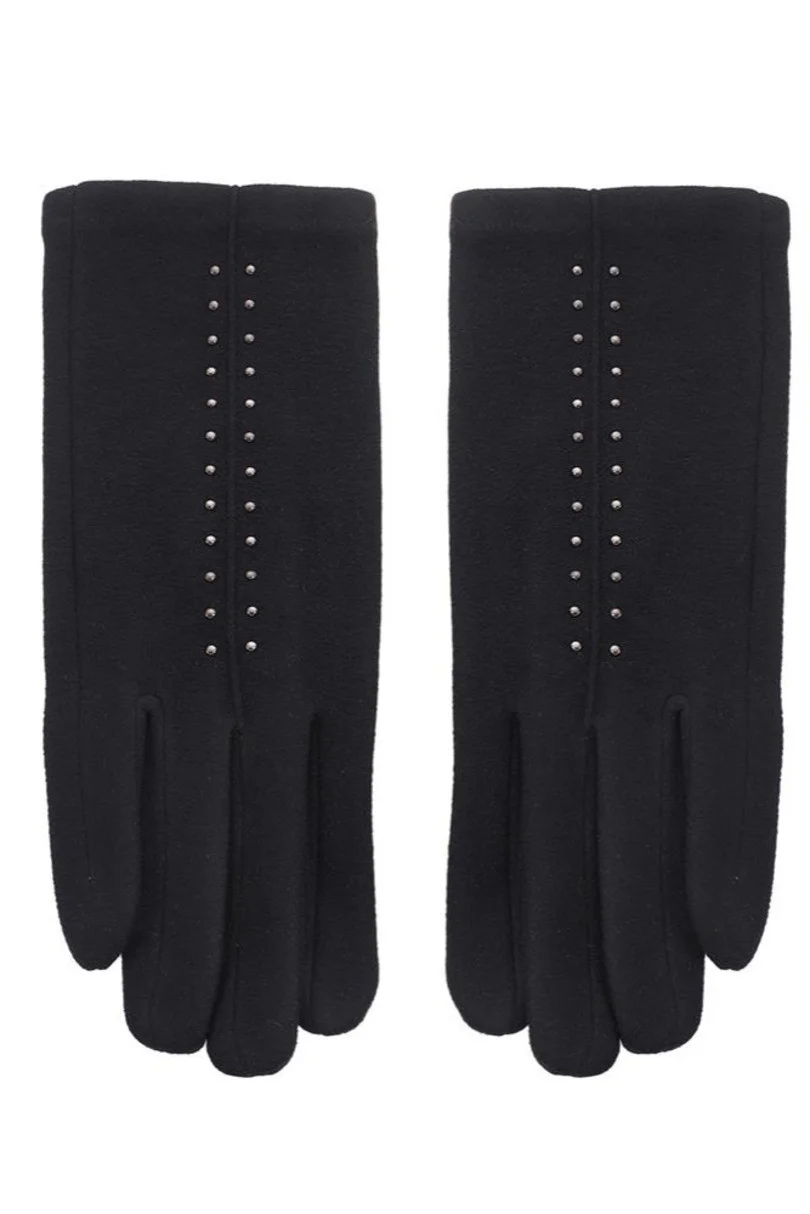 Dámské rukavice se stříbrnými kamínky. Vyrobené z materiálu připomínajícího semiš s příjemným hřejivým fleecem uvnitř. Ukazováček a palec mají speciální prošití, které umožňuje ovládat telefon bez nutnosti sundat rukavici.