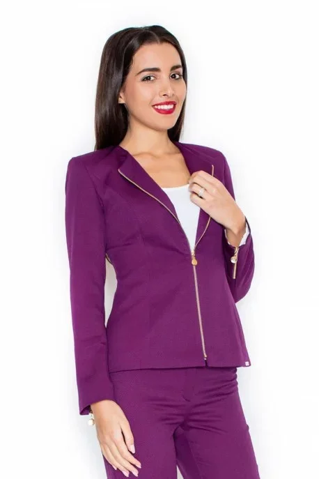 Dámské sako je s nápaditým zapínáním na zip, zip je i na rukávech.