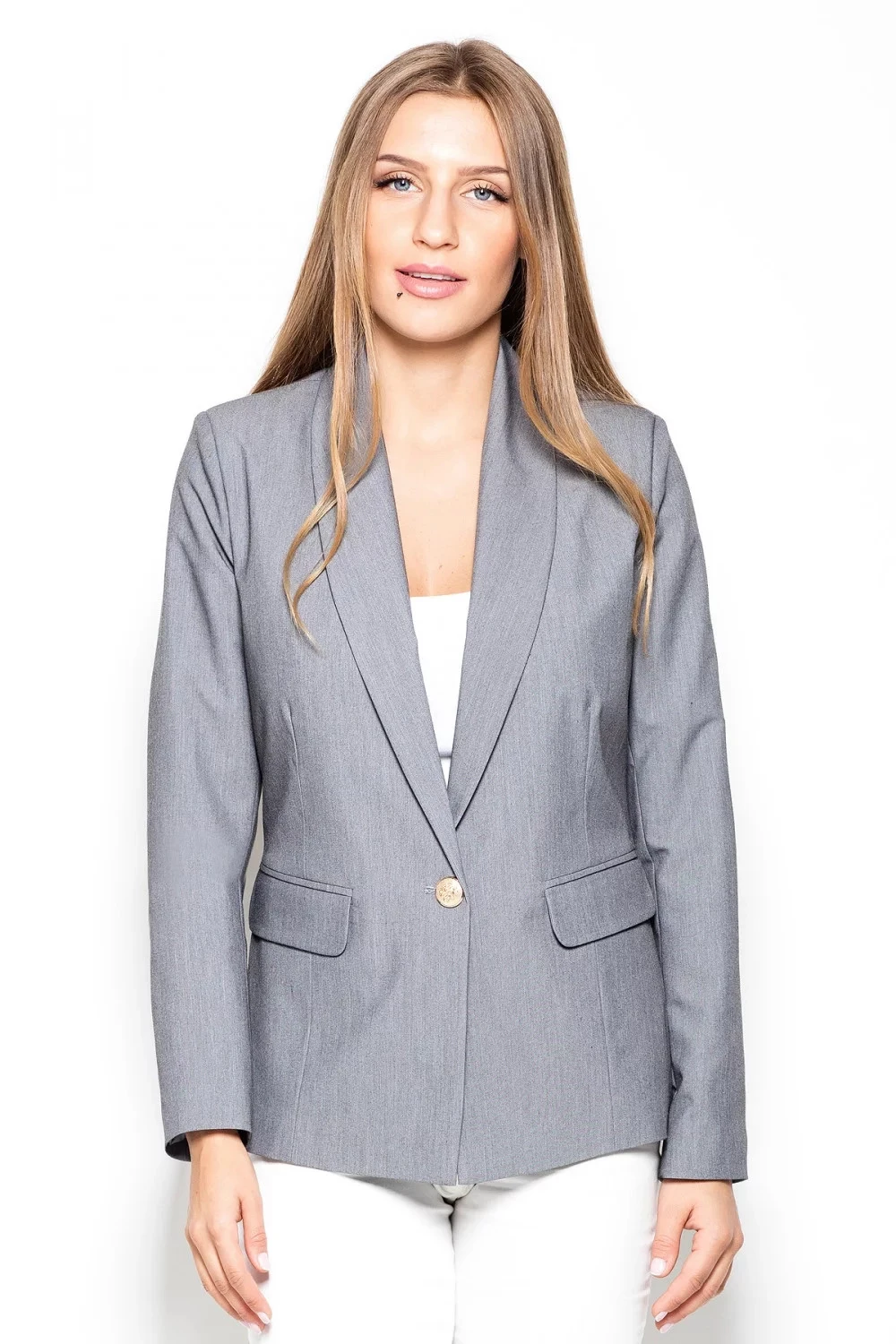 Módní dámské sako se zapíná na jeden knoflík - perfektní střih, opticky zeštíhluje postavu.