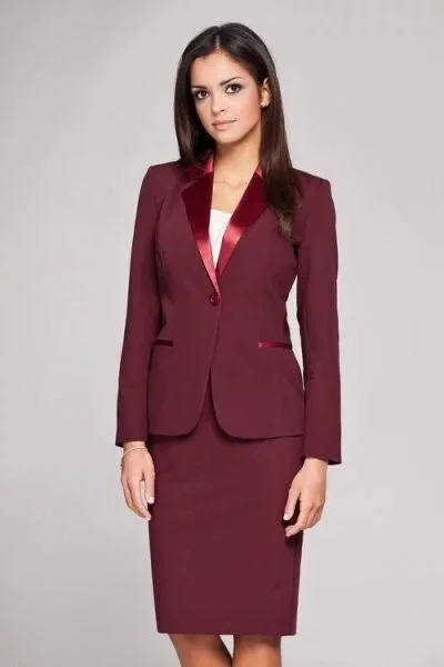 Dámské elegantní sako M154 FIGL ozdobené lesklým límečkem, klopy a kapsami. Sako má dlouhé rukávy a zapíná se na jeden knoflík. Sako je vyrobeno z příjemného materiálu, který se nemačká.