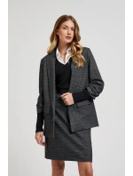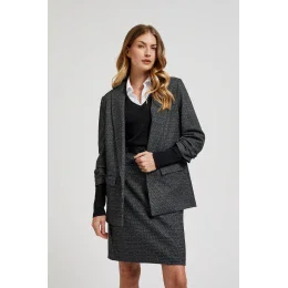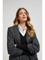 Sako má klopy a má podšívku. Nařasené rukávy mají 3/4 délku. Délka modelu sahá k bokům.