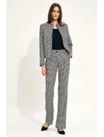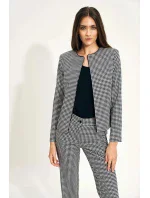Dámské sako 588-1 Numoco basic - černá barva - z hladkého materiálu - dlouhé nařasené rukávy - s podšívkou a ramenní vycpávky - falešné kapsy zdůrazňují minimalistický design