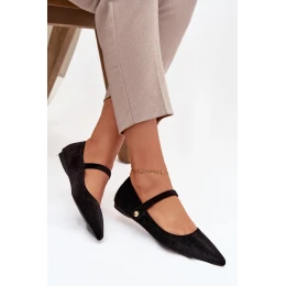 Dámské sametové baleríny s páskem a zlatým detailem Gisanne – černé