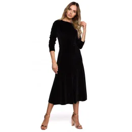 Dámské sametové midi šaty s volánkovými rukávy M557 černé - Moe