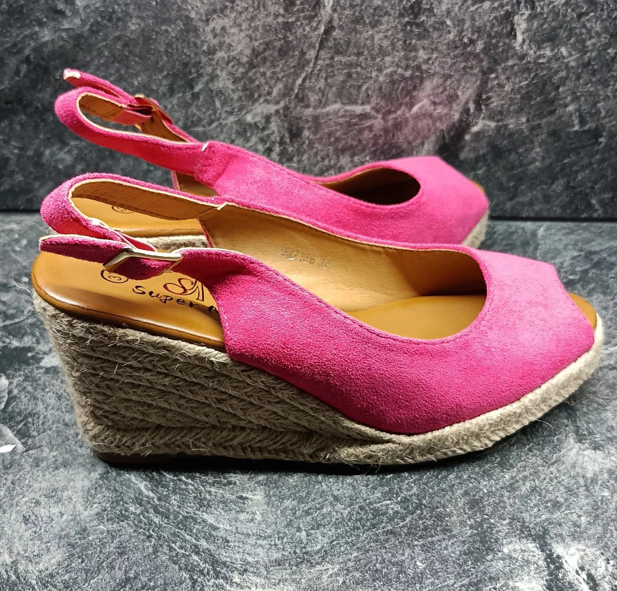 Dámské sandálky na klín podpatku Fuchsiová tm. růžová - Super me