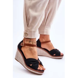Pohodlné sandály na módním klínovém podpatku jsou klasikou mezi dámskou letní obuví. Vložka a vršek jsou vyrobeny z látky. Pata byla vyztužena. Boty se zapínají na nastavitelný pásek s přezkou. Podešev v těchto sandálech je vyrobena z plastu a je protiskluzová. Tyto sandály jsou perfektní volbou pro letní styling. Při výběru velikosti se řiďte tabulkou velikostí.