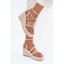 Dámské Sandály Na Klínu Se Zdobením Na Páskách Béžové Lunara
