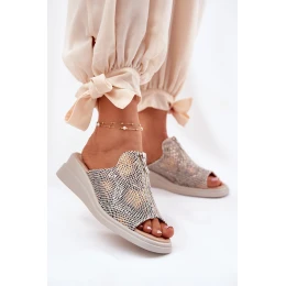 Dámské sandály na klínu se zipem zvířecí vzor béžové Irriva
