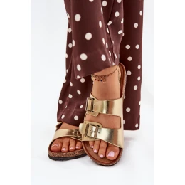 Dámské sandály na korkové platformě s přezkami zlaté Vesina