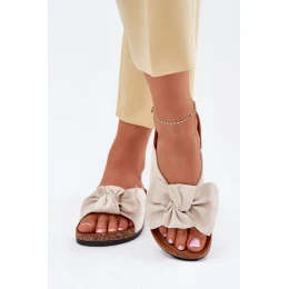 Dámské sandály na korkové podrážce s mašlí béžové Seressa