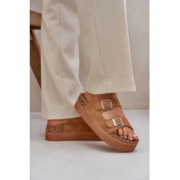 Dámské sandály na masivní platformě s přezkami Camel Aramia