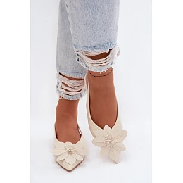 Dámské sandály na nízkém podpatku s dekorativním květem Jasnobeżowe Telivette