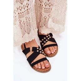 Dámské sandály na nízkém podpatku se zlatými cvoky – černé