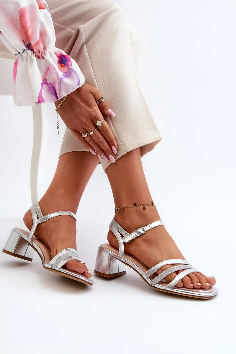 Dámské sandály na nízkém podpatku vyrobené z eko kůže Sergio Leone Silver