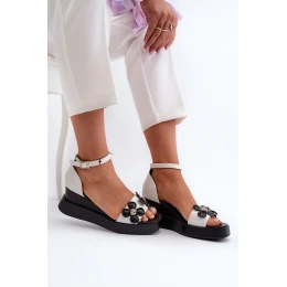 Dámské sandály na platformě a klínové podpatky s květinami Bílé Foviana