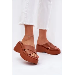 Dámské sandály na platformě a klínu camel Nelithraea