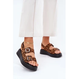 Dámské Sandály Na Platformě A Kotníku S Přezkami Leopardí Hnědé Genorre