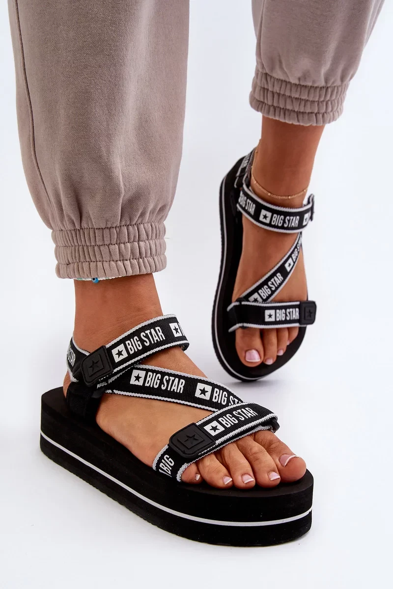 Dámské sandály značky Big Star jsou dokonalou kombinací pohodlí a stylu. Zapínají se na suchý zip, zaručují snadné přizpůsobení noze. Namontované na platformě. Tyto sandály, ideální pro letní dny, jsou perfektní jak na pláž, tak na procházky po městě a dodají lehkost každému letnímu stylingu! Při výběru velikosti se řiďte tabulkou velikostí.
