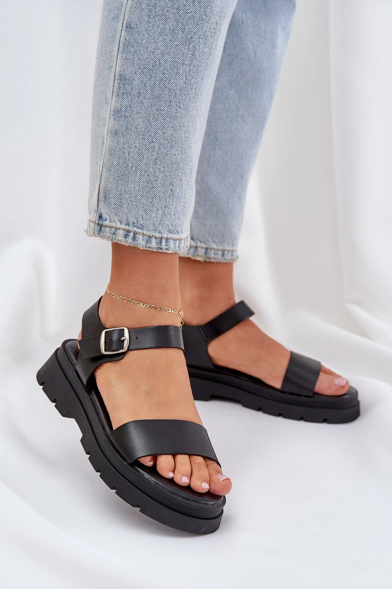 Pohodlné dámské sandály byly navrženy na plochém podpatku a platformě. Jsou vyrobeny z ekologické kůže a mají široký pásek, který stabilizuje nohu a zabraňuje jejímu posunu. Díky měkké stélce zaručují tento obuv pohodlí i při celodenním nošení! Model je zapínán kolem kotníku pomocí nastavitelných pásků s přezkou. To je vynikající volba na teplé letní dny. Při výběru velikosti se řiďte tabulkou velikostí.