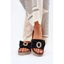 Dámské Sandały Na Platformě S Mašlí A Dekorativní Broží Černé Lenela